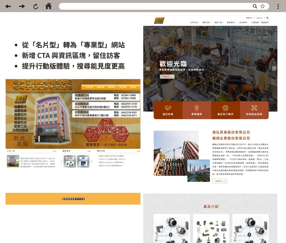 透過改版與升級,我們幫助企業官網從「名片型」轉變為「專業型」,不僅優化使用者體驗,也讓品牌在搜尋與 AI 環境中更有能見度